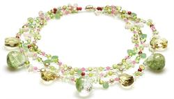 Over the years Lexi has created over 80 different color combinations of Neckisses that are all unique and special. In this showcase of retired Neckisses, you can take a look at the fabulous world of Neckisses through the past 5 years. Lexi is not only a jewelry designer but an artist as well. She studied painting in college and learned the complex theories of color and design. She takes that knowledge and applies it to Neckisses, pushing the limits of what you except to see in jewelry by using not only colored stones found in nature, but also manmade materials like glass and crystals which add a depth to her colors. And, she also incorporates a third dimension: light. This makes each and every Neckiss sparkle and shine unlike anything else. Enjoy this journey through time, and, if there is a style here that you adore, call or email us, because we will bring favorites back in seasons to come.